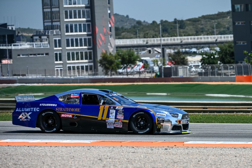 Les débuts de Raphaël Lessard dans la catégorie Open de la série NASCAR Euro ont été impressionnants ce week-end, dans le cadre des manches 1 et 2 disputées sur le circuit de Valence, en Espagne. Hélas, un problème mécanique puis une pénalité de 10 secondes ont empêché le pilote québécois d’inscrire deux victoires qui lui semblaient promises après avoir récolté la pole position aux qualifications avec sa Ford Mustang du Alumitec Racing (photo ci-dessus).